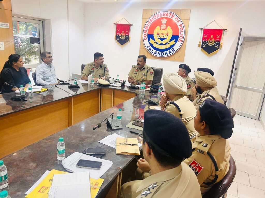 क्राइम खबरनामा, गौरव नागपाल : पी.के. सिन्हा आई.पी.एस, ए.डी.जी.पी. लॉ एंड ऑर्डर पंजाब के नेतृत्व में जालंधर में एक उच्च स्तरीय सुरक्षा बैठक आयोजित की गई। स्वपन शर्मा, आई.पी.एस, पुलिस आयुक्त, जालंधर, के अलावा कमिश्नरेट पुलिस के अन्य वरिष्ठ अधिकारी भी बैठक के दौरान उपस्थित थे।