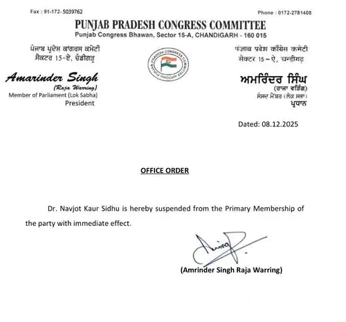सस्पेंशन की वजह सीधे नहीं बताई गई, लेकिन मामला तब भड़का जब डॉ. नवजोत कौर ने बयान दिया कि —अगर सिद्धू को CM फेस बनाया जाए, तो वह एक्टिव होकर पंजाब को गोल्डन स्टेट बना सकते हैं।