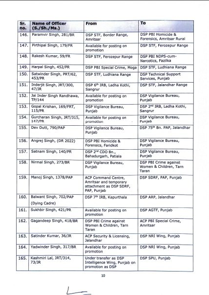पंजाब सरकार की तरफ से बड़े पैमाने पर तबादले किए गए है। इनमें जालंधर के अधिकारियों के नाम भी शामिल हैं। सुबह कुछ जिलों के डी.सी. बदले गए थे, जिसके बाद ए.डी.सी. तथा एस.डी.एम. के तबादले किए गए है। इसके तहत जिला संगरूर, होशियारपुर,. बठिंडा, जालंधर, अमृतसर, फरीदकोट आदि जिलों के ए.डी.सी. तथा एस.डी.एम. बदले गए है, जिसकी सूची इस प्रकार हैः-